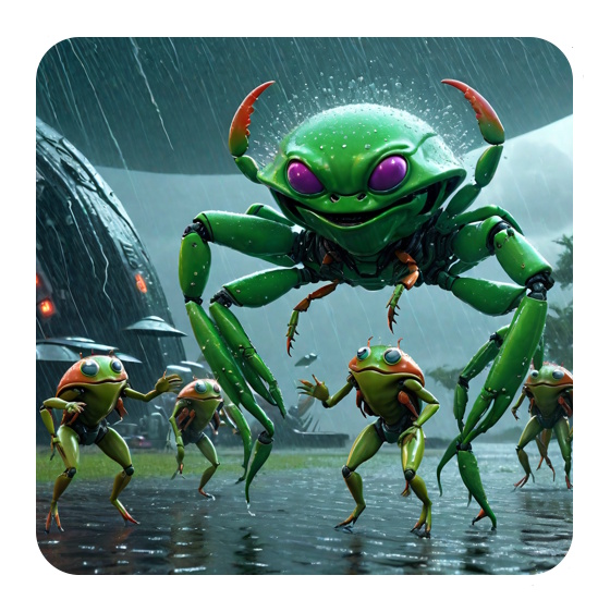 Op zijn derde poot van links staat het mantra "de 5 dagen van duisternis zijn nabij" getatoeëerd. Rockolombera is zijn naam, de alom gevreesde leider van de Crebonians en de eerste generaal van Zermasso zijn rebellenleger. Â